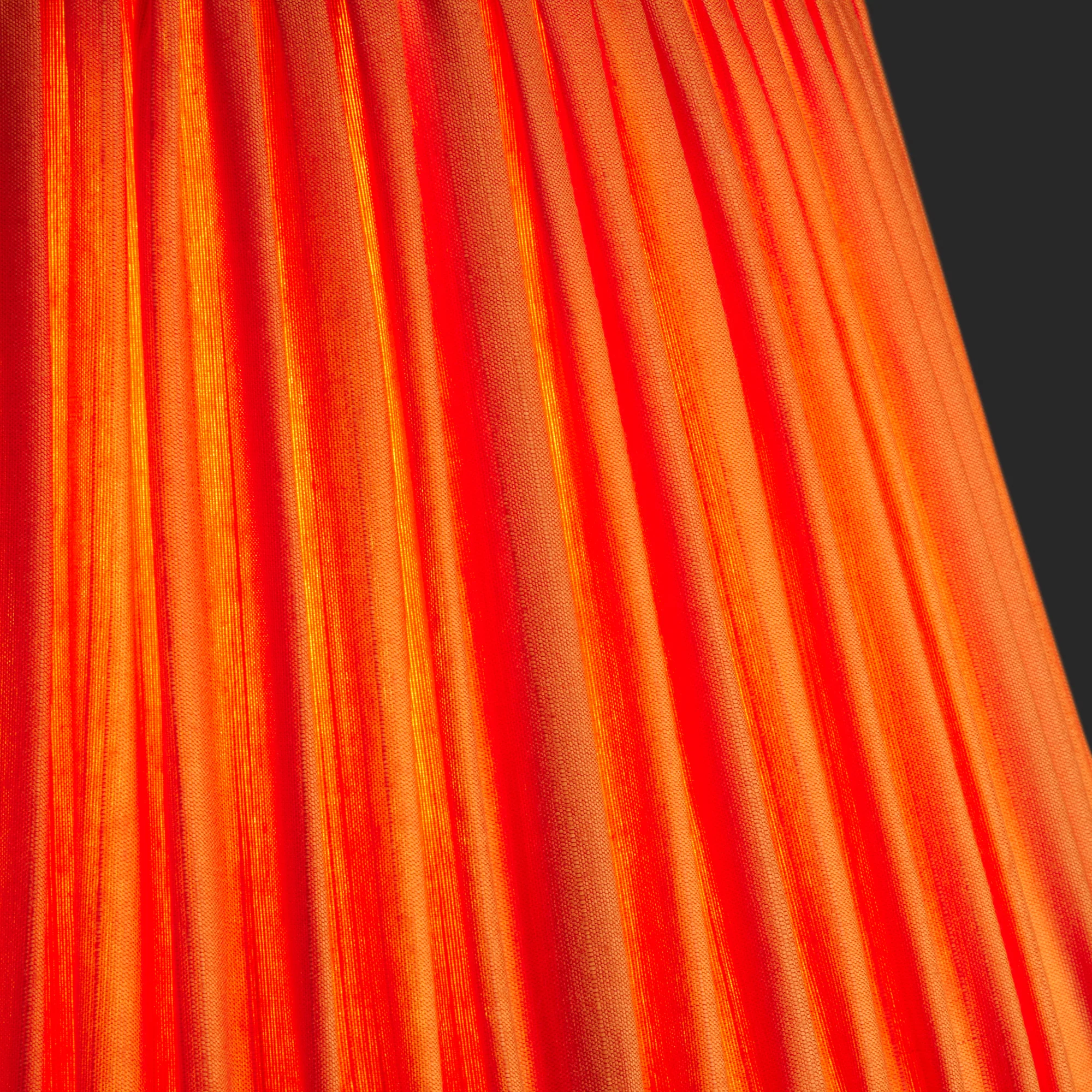 A soft Indian gathered silk empire shade in bold, beautiful, persimmon orange with a gold interior. Adds sophistication to any space.