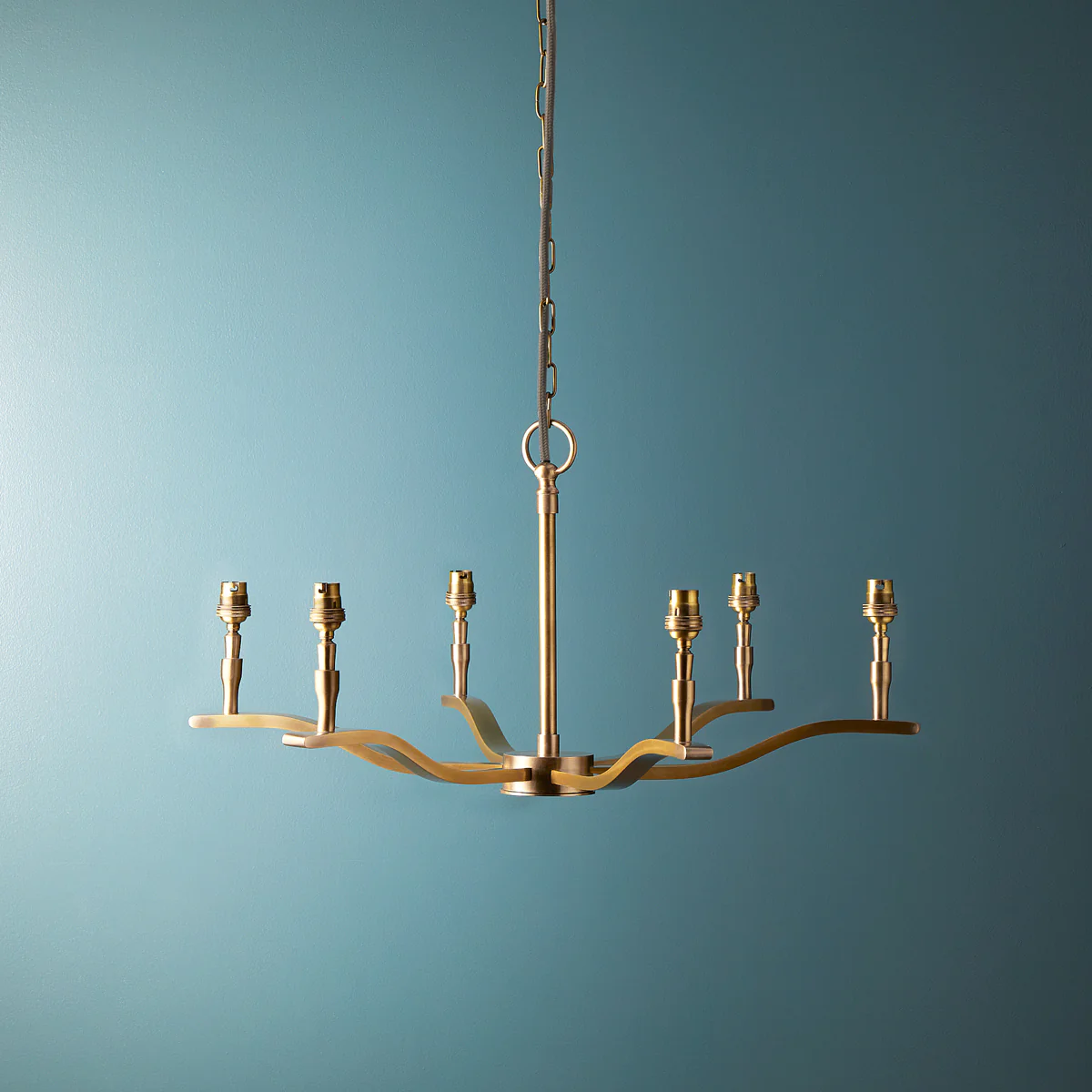 This is our pick of the bunch from the less is more school of design! Six subtly undulating solid brass wings and the minimum of fuss and the result is one of our most satisfyingly beautiful chandeliers. Think large, effortlessly floating seabird! The flattened arms bring a very contemporary style but honestly, this beauty will still be contemporary when your great-great-grandchildren are squabbling over it.