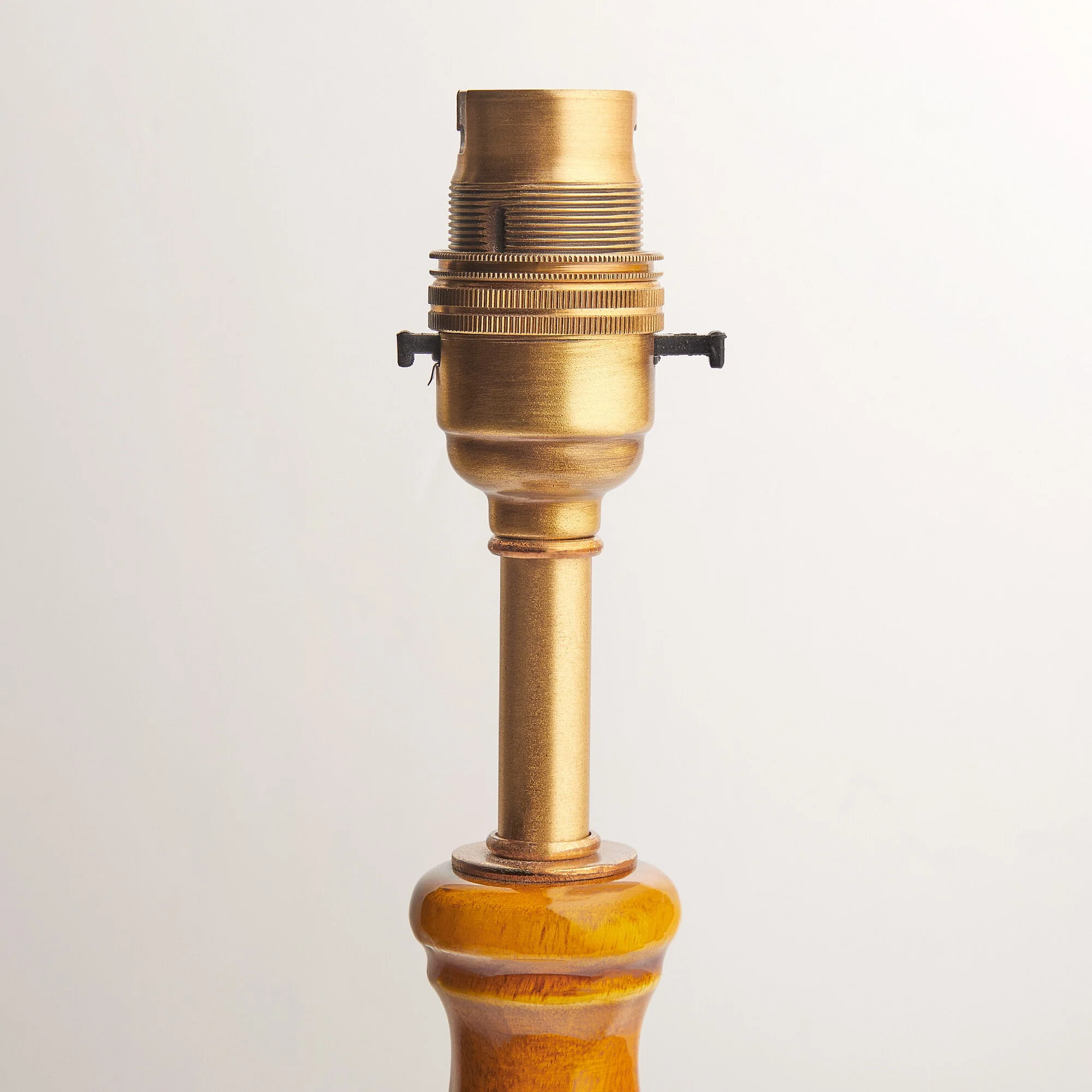 Have a look at the close up images of this lamp base. You'll notice how it's finished with a translucent resin lacquer through which you can see the grain of the wooden base. It is original, unusual and very effective, especially with this glorious saffron tint.