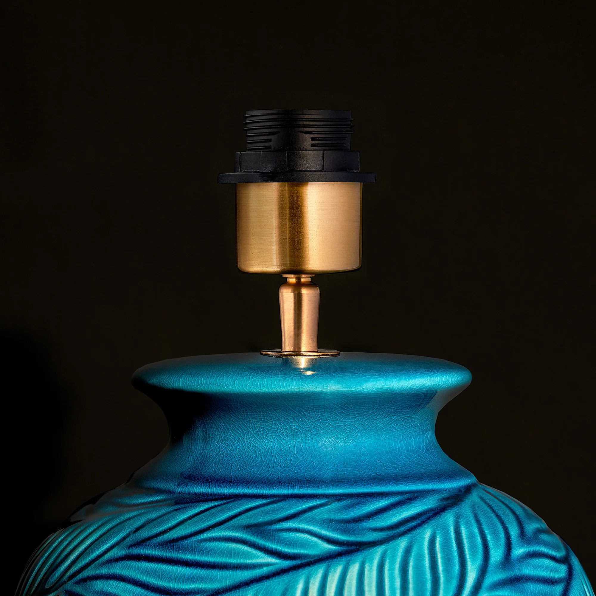 We love the leafy, organic mouldings on this stunning table lamp....so much so in fact that we offer it in three sizes...small, regular and seriously, no-nonsense 'look-at-me I'm so' big. And a stunning blue-y turquoise glaze to boot.