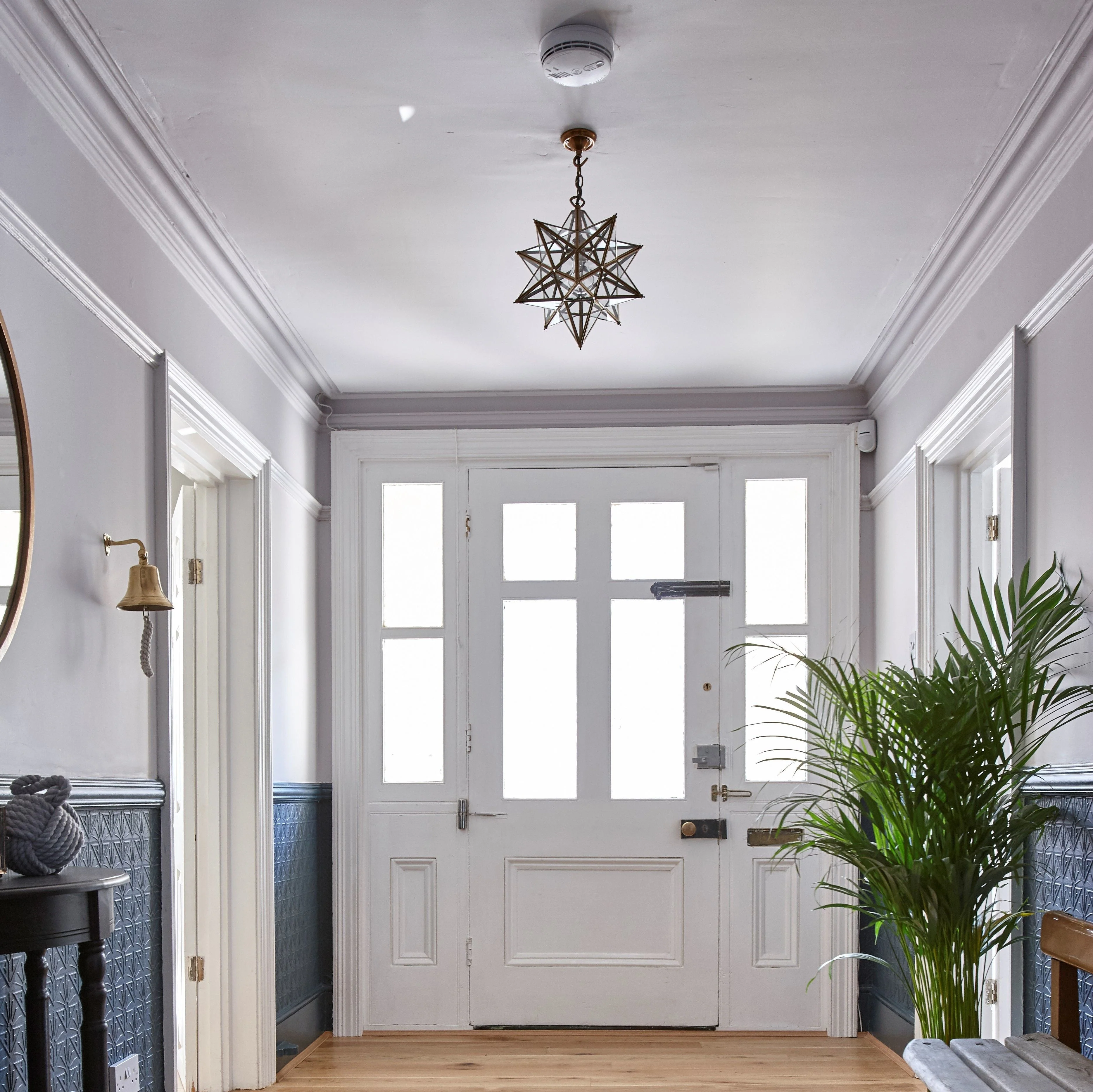 Twinkle Twinkle little….star pendant. Antique brass work with clear glass. A very classy centrepiece. Supplied with olive green flex, brass chain and ceiling plate.