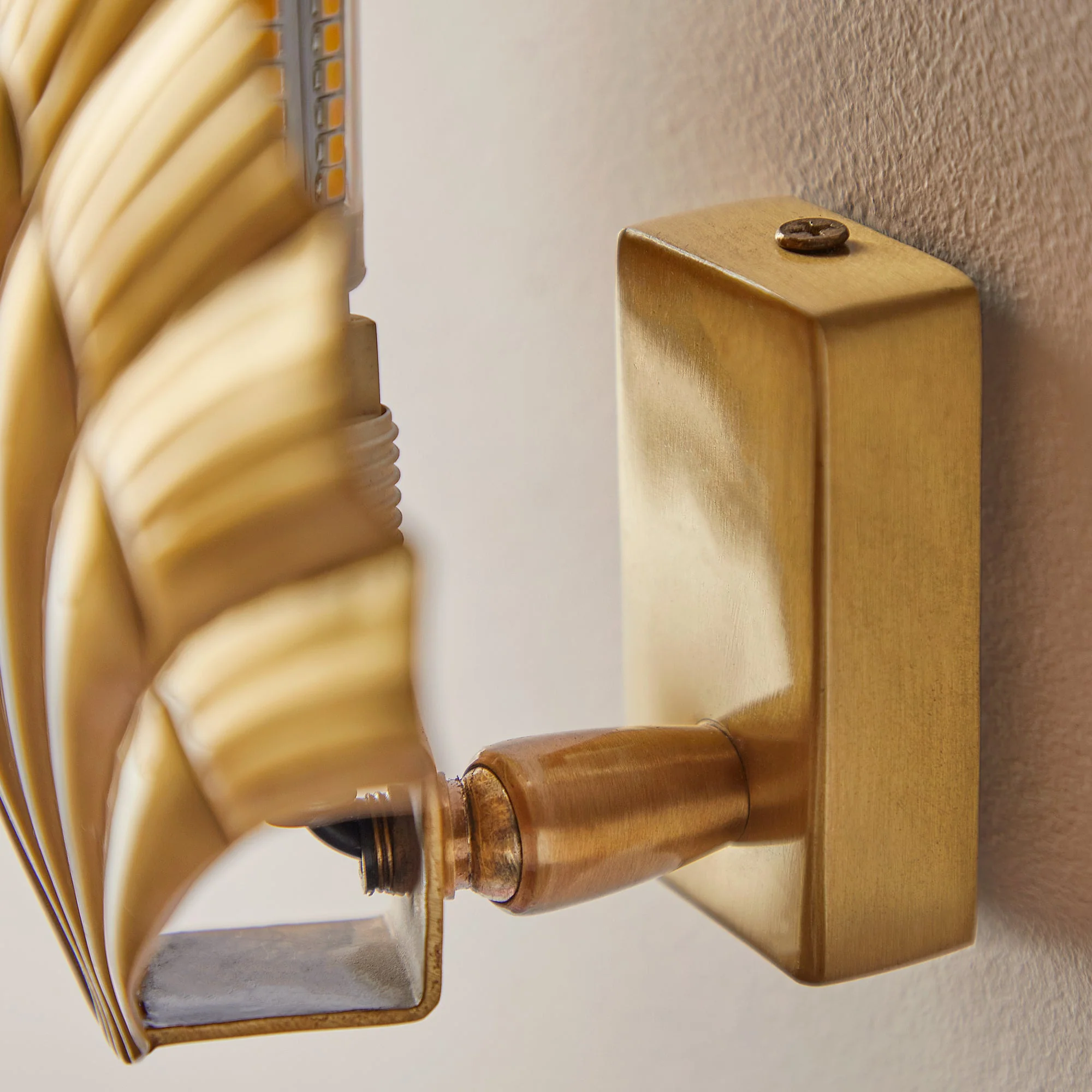 A very pretty brass scallop shell front that diffuses its light back onto the wall for a soft, intimate glow. Discreet and out of the way and perfect for corridors and smaller rooms.