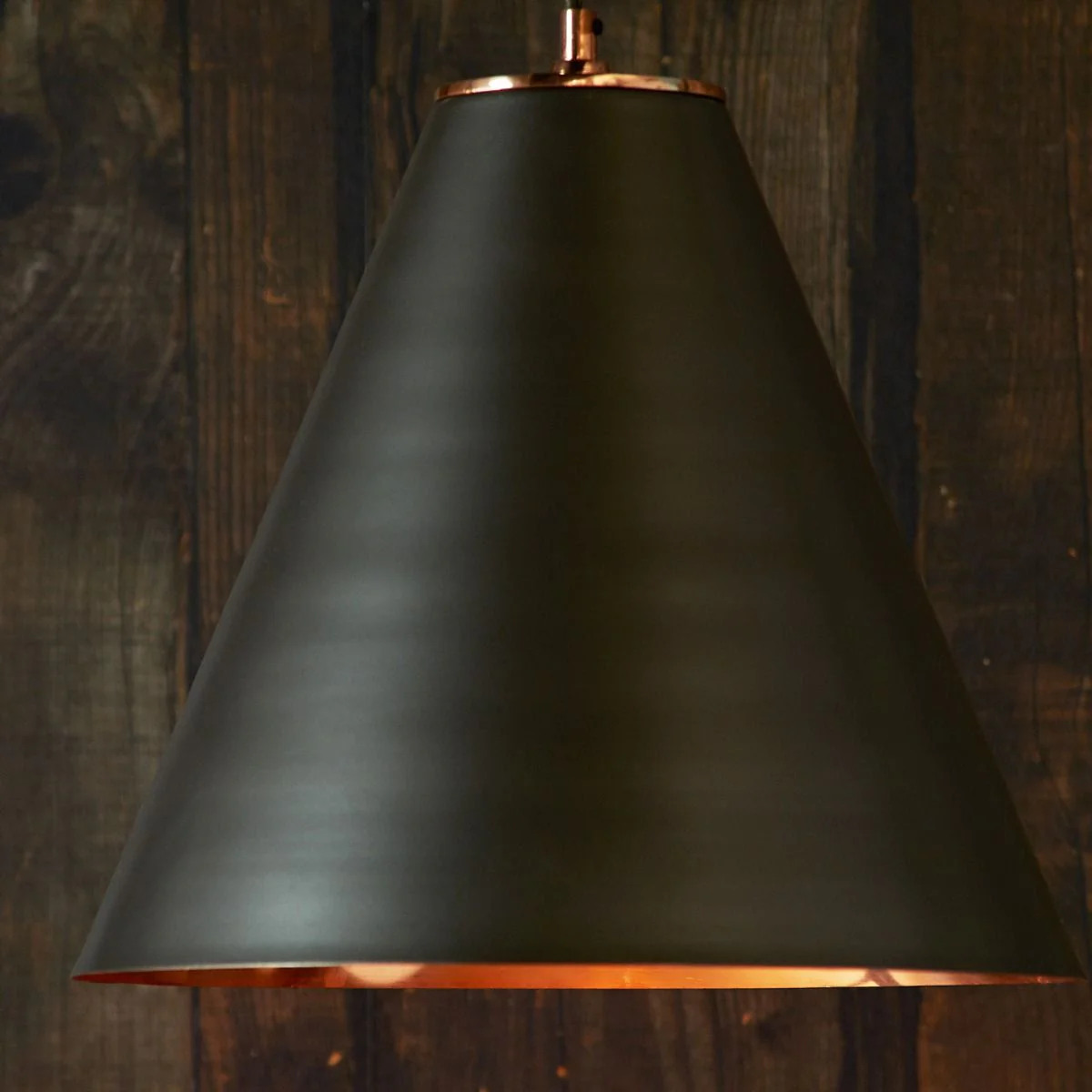 Our Super Stanley pendant lights are, as the name may suggest, simply super. Big, but not too big and a properly striking design. On the top of the cut off cone there is thick solid brass plate. The polished finish on the outside is slick and contemporary as hell, and the copper interior casts a lovely warm light. Available with either black or white exterior. A well thought out and serious light.